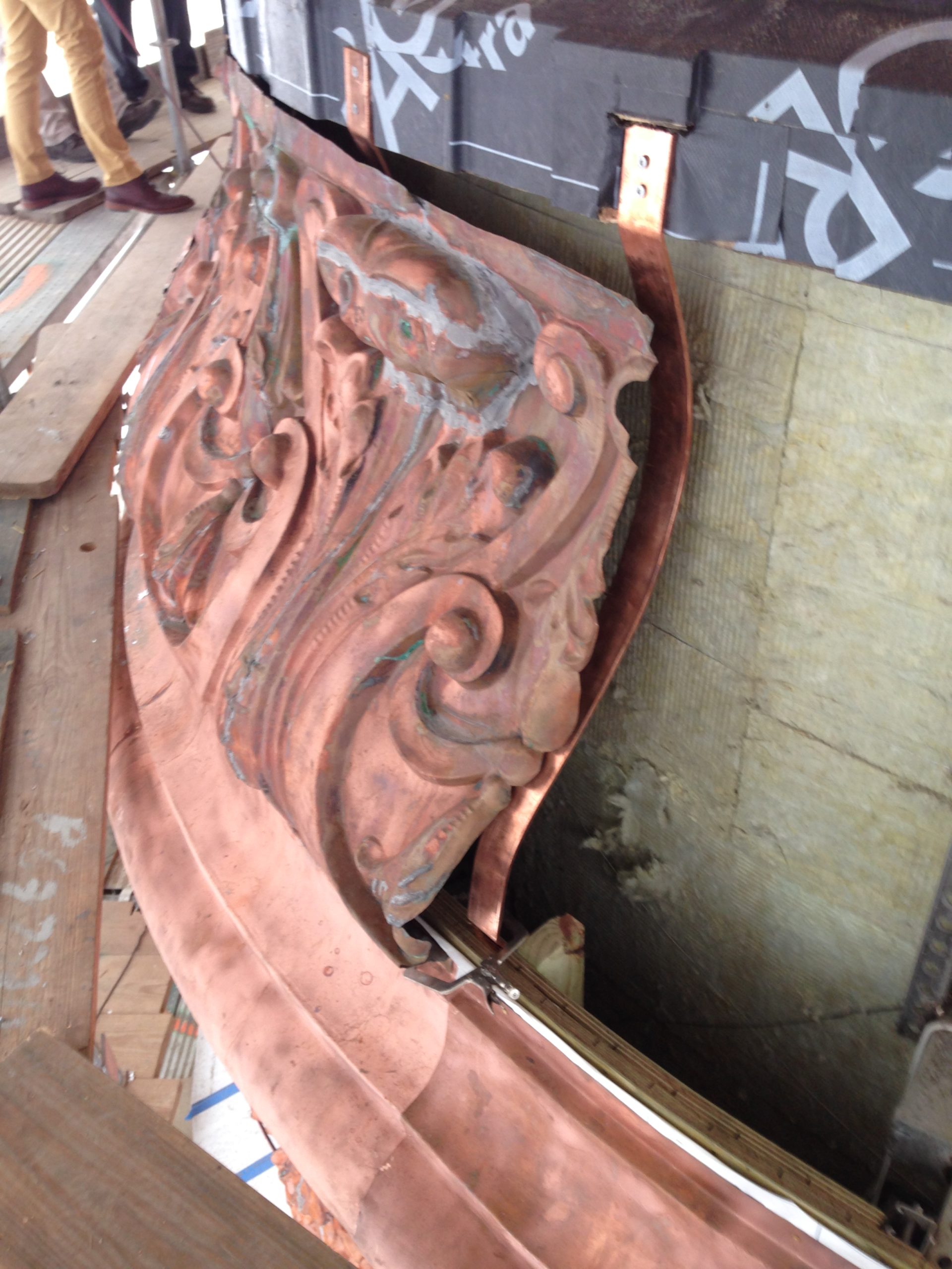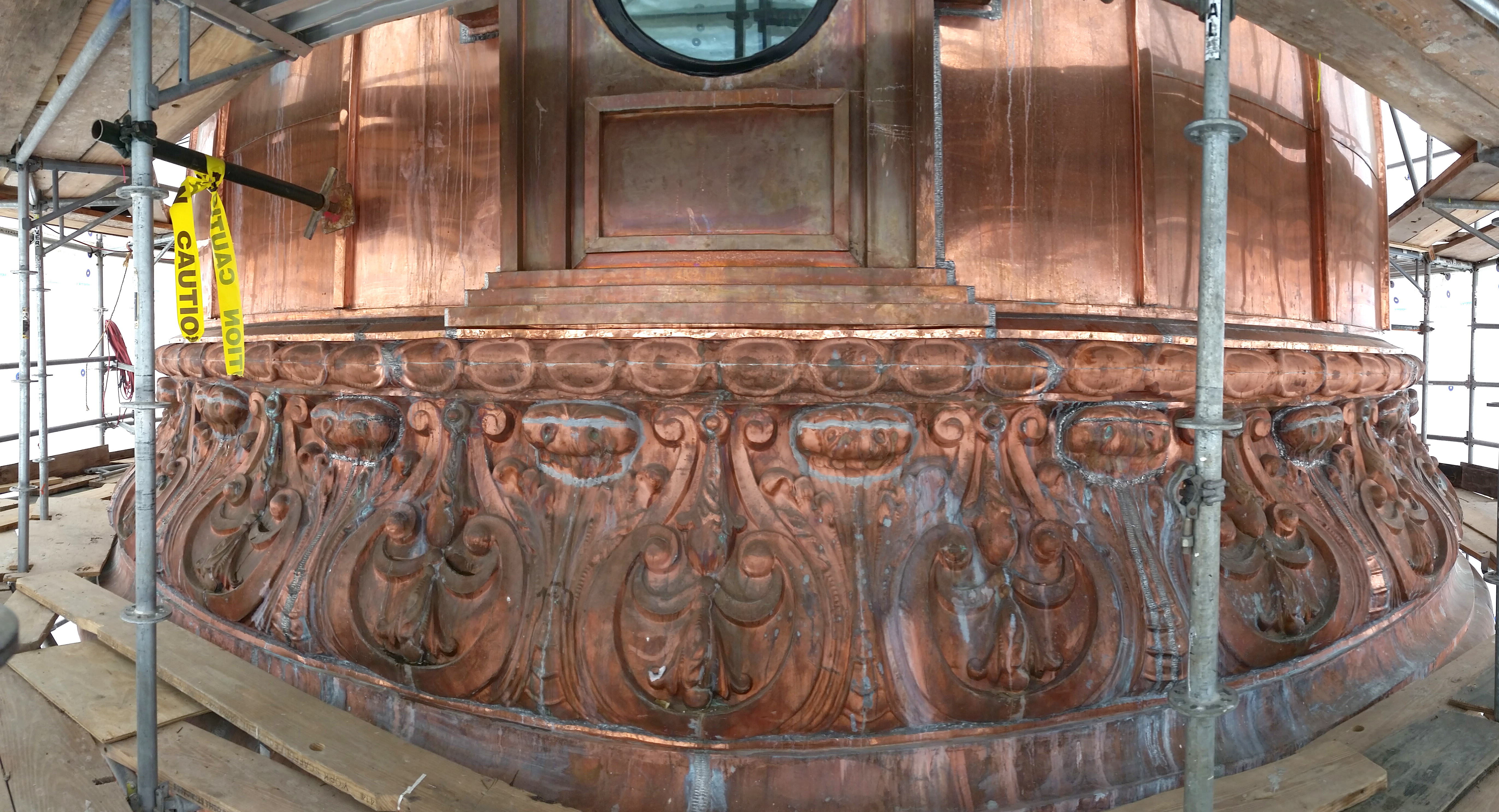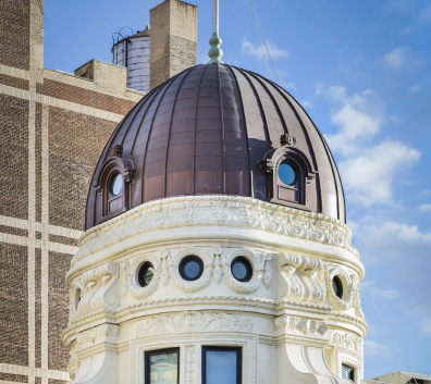 This gorgeous three-story cupola is located on top of a Beaux Arts apartment building in the Ladies Mile Landmark District and was designed Henry Edwards Fricken in 1899. Nicholson & Galloway was hired in 2014 to perform a full replacement of the cupola cladding including: