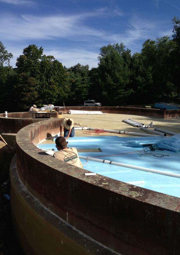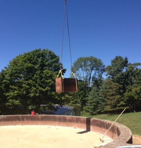 - Remove and reinstall 54 one-thousand pound coping stones with crane